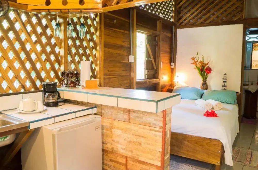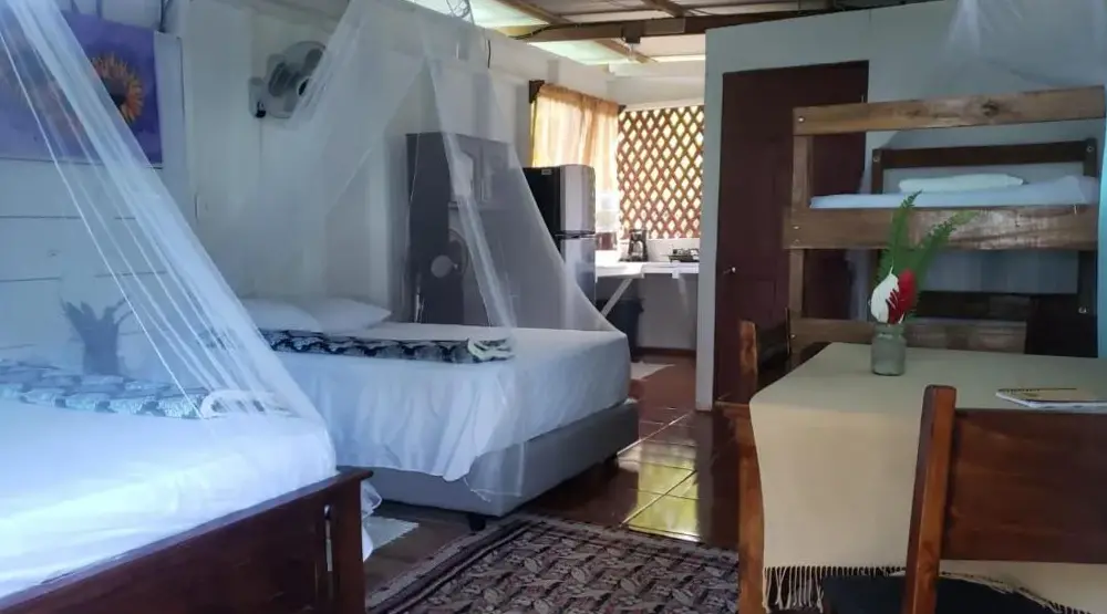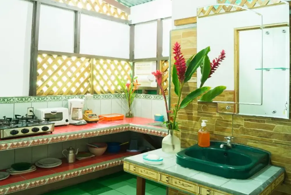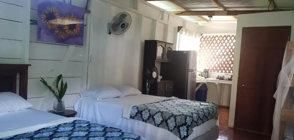 Het Hostal Cecilia ligt centraal tussen de twee kleine dorpen Puerto Viejo en Cocles, aan een ideale locatie voor wie op zoek is naar ontspanning en natuur. Het hostel biedt comfortabele accommodaties met privé-kamers en badkamers die volgens bezoekers altijd schoon zijn onderhouden. De gasten prijzen vooral de vriendelijke service van het personeel en de rustige omgeving, ideaal voor een verblijf waar je kunt genieten van zowel avontuur als ontspanning. Met directe nabijheid tot populaire bestemmingen zoals Playa Negra (1 kilometer) en diverse parken zoals Parque Nacional Cahuita (1,4 kilometer), ben je hier perfect geplaatst om te wandelen door tropische bossen of te ontspannen aan lokale stranden. Ook de nabije Cafeteria Sel & Sucre (950 meter) en Café Larry (850 meter) zorgen ervoor dat je gemakkelijk heerlijke maaltijden kunt vinden zonder ver weg hoeven te reizen. Voor actievelingen staat er een gymzaal ter beschikking, terwijl gezinnen kunnen kiezen uit familiekamers. Gratis parkeren is mogelijk, waardoor ook auto’s veilig staan tijdens je verblijf.